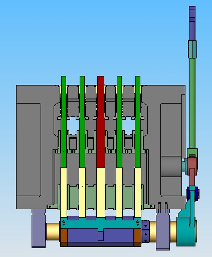 - 連桿式下部頂料機(jī)構(gòu):下部頂料以連桿機(jī)構(gòu)取代習(xí)用之凸輪板,減少了摩耗,使頂料機(jī)構(gòu)更可靠、耐用。頂料作動(dòng)直接以機(jī)構(gòu)與主動(dòng)軸連結(jié),因此更穩(wěn)定,適合于較高速之生產(chǎn)。